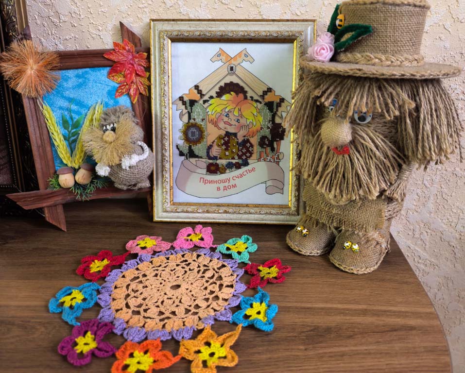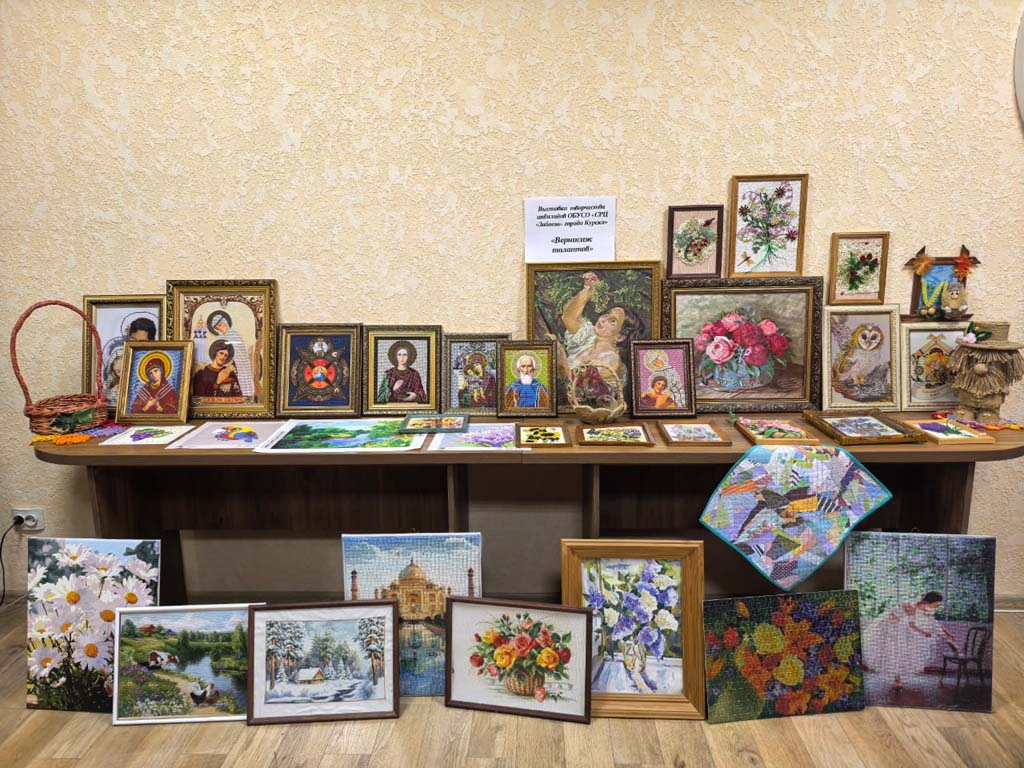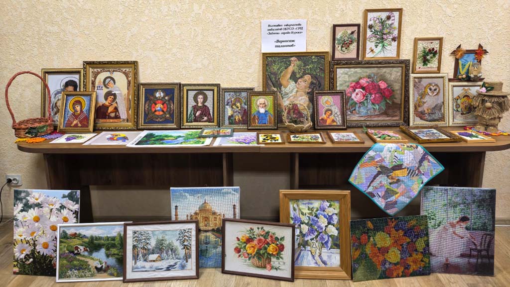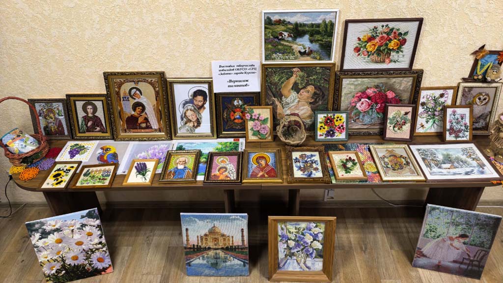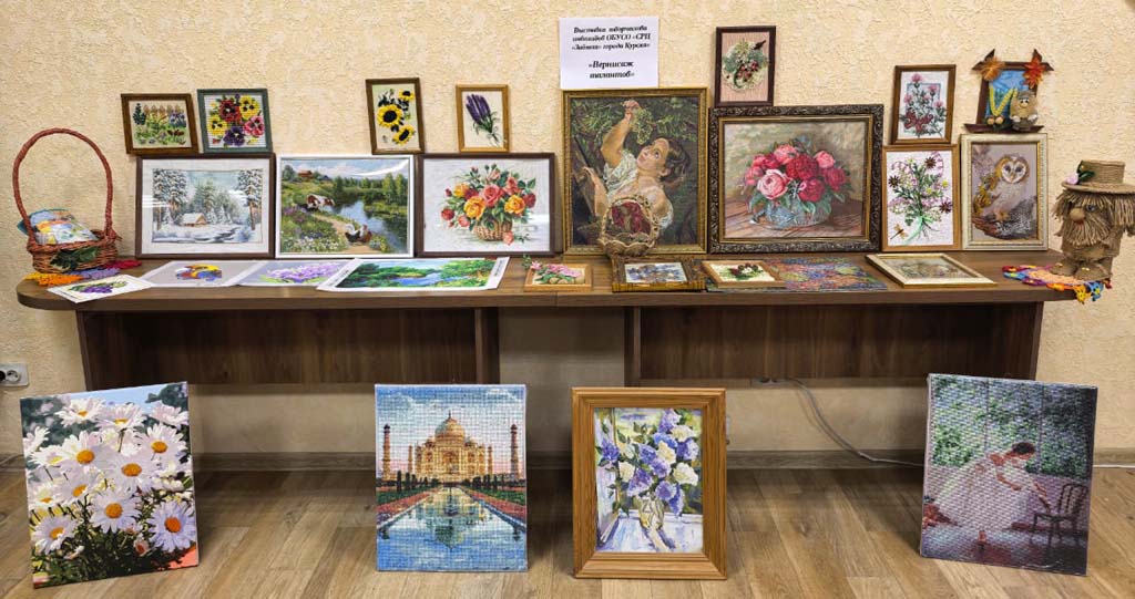 Выставка творческих работ, организованная в рамках декады инвалидов, — это замечательная возможность продемонстрировать талант и мастерство наших получателей социальных услуг. Мастерицы ОБУСО «СРЦ «Забота» города Курска»: Савенкова Т.А., Кравченко З.И., Шубина Т.А., Сорокина В.Т., Миронова О.В., Кваскова А.И., Борзенкова Г.В., Бородавченко Р.Н.  представили разнообразные изделия, такие как картины, вышитые бисером, стразами, цветными нитками, плетеные корзинки а также великолепные картины, выполненные крестиком. Кроме того, на выставке можно увидеть домовенка Кузю и картины, связанные с ним. Эти работы показывают, насколько уникальными могут быть таланты каждого человека. Старательность и креативность наших рукодельниц вдохновляют всех посетителей!