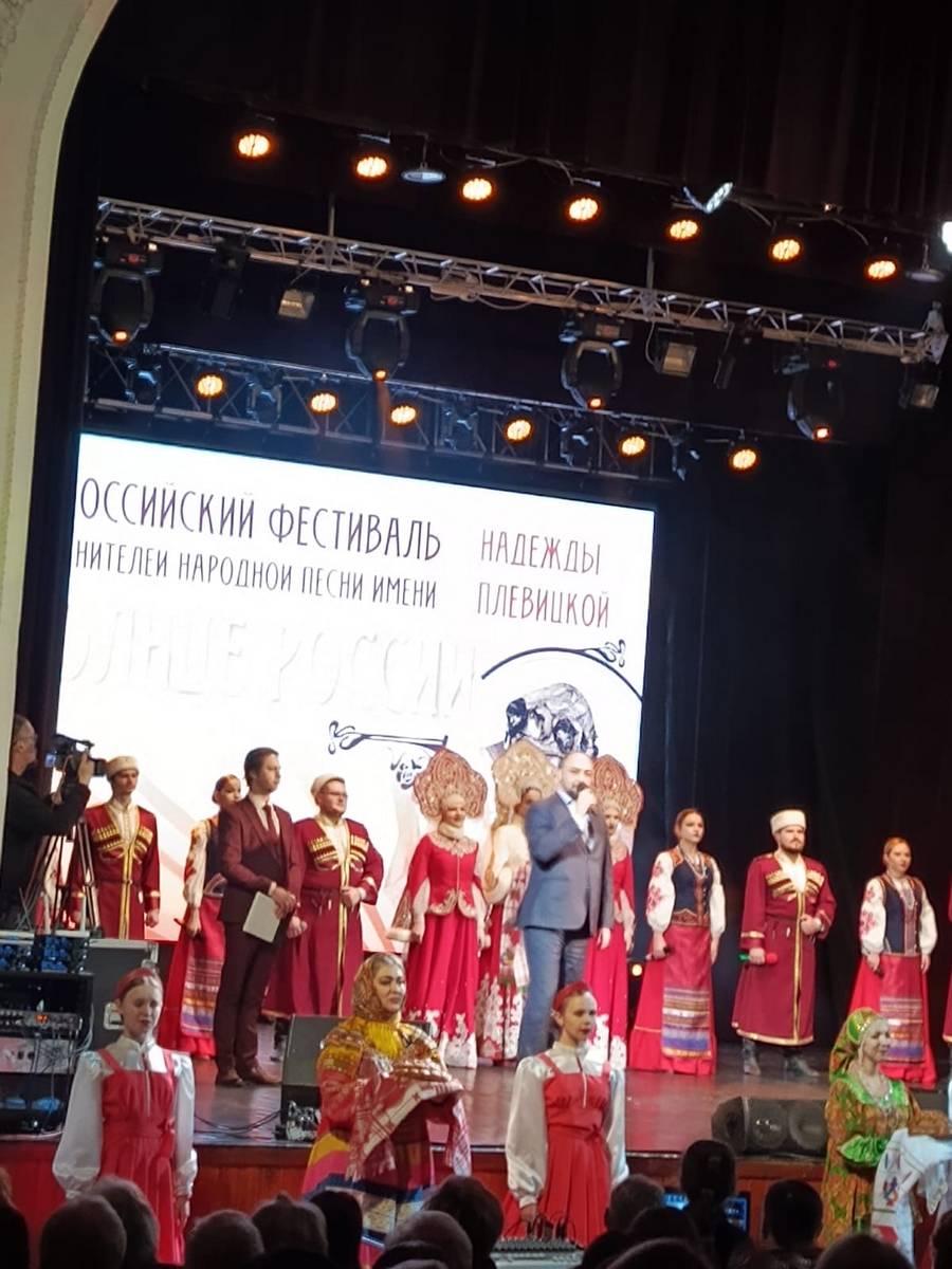 Душа народа в русской песне… Русскую народную песню не сравнить ни с чем, ее благородные напевы очищают, одухотворяют и боготворят. В народной песне есть все: и безудержное веселье, и глубокие размышления, и молитва, и еще множество и множество различных чувств. Поэтому переполненный зал Дворца культуры имени В. Винокура рукоплескал, наслаждаясь переливами народных песен в исполнении артистов из Орловской, Белгородской, Воронежской, Тульской областей нашей России.