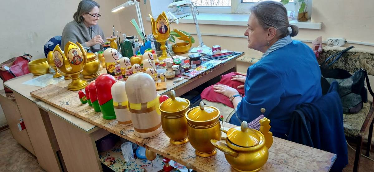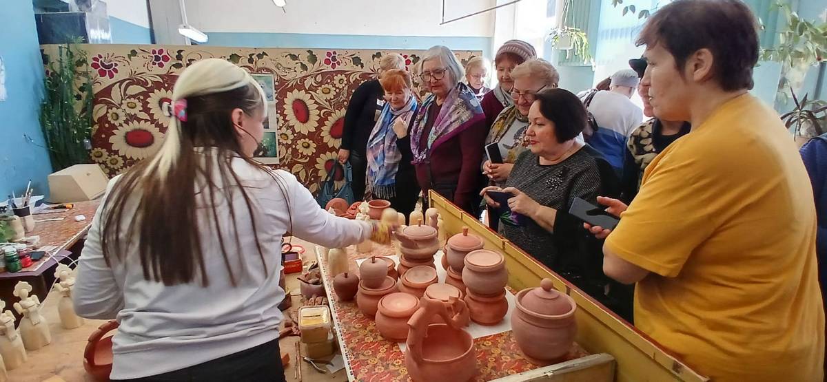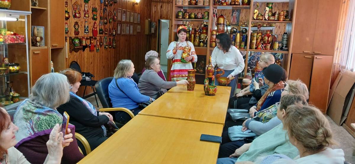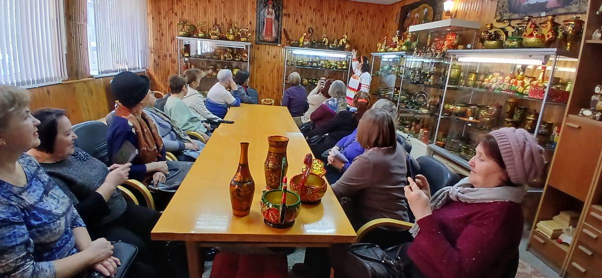 Не надо доказывать, что существует творческий тип личности пожилого человека, который занимает активную жизненную позицию, оптимистичен, стремится к новым знаниям, подвижен и имеет хобби, это все совершенно очевидно для участников социального проекта «Курское долголетие». Они уже имеют богатый опыт и множество накопленных знаний, которые могут вложить в творческую деятельность, но это не мешает им пополнять копилку своих знаний и умений, посещая увлекательные выставки и творческие встречи. Одной из таких долгожданных встреч стала экскурсия «Курская хохлома» в художественные мастерские ЮЗГУ. Самовары, матрешки, разделочные доски, предметы домашней утвари просто поражают воображение. Нам рассказали, что изделия делают из двух видов древесины: липы и осины. Заготавливают зимой, дают высохнуть 6 месяцев. Затем делают баклуши, которые ещё сохнут. А потом они отправляются в токарный цех, где из них делают заготовки, которые обжигают в печи и покрывают олифой. И вот наступает очередь художников! Сначала изделия расписывали, используя традиционную хохломскую роспись: чёрный, красный и золотой цвета. В мелком рисунке листья, ягоды. Потом встала задача включить в рисунок исконные курские мотивы. Для этого изучили народные промыслы Курской области: Суджанское ковроткачество, народный курский костюм. И в результате появились крупные объёмные цветы в центре изделия, красные розы и маки, белая роспись -кудревина. Изделиями можно не только любоваться, но и приобрести для своего дома.