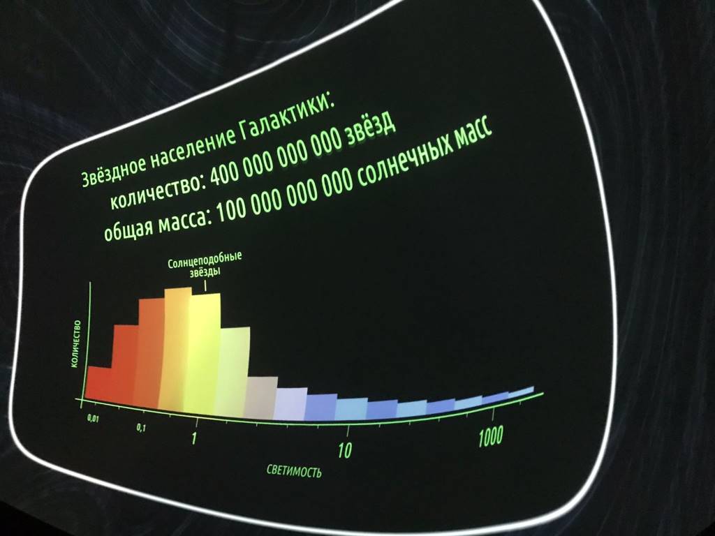 Посетители совершили космическое путешествие, познакомились с устройством космического дома – Млечного Пути. Каковы форма, размеры и масса этой звездной системы? Сколько в ней звезд? Какие еще компоненты входят в ее состав? Как они взаимодействуют между собой и как это влияет на жизнь? Как свет сотен миллиардов звезд сливается в тусклую полоску на ночном небе, которую еще древние прозвали «Млечный путь».
