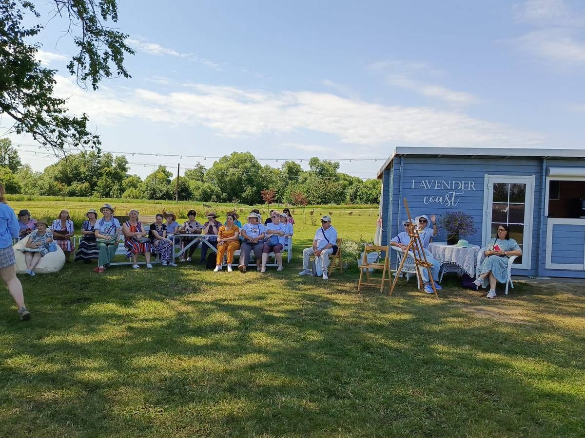 Участники социального проекта «Курское долголетие» клуба «СТИМУЛ» ОБУСО «СРЦ «Забота»» г. Курска посетили с экскурсией цветочную ферму «Лавандовый берег». Алена Лобынцева, одна из участниц семейного проекта, рассказала о том, как создавалась эко-ферма, какие сорта лаванды здесь растут, познакомила с ароматическими свойствами нежного цветка и провела мастер-классе по производству гидролата и эфирного масла.