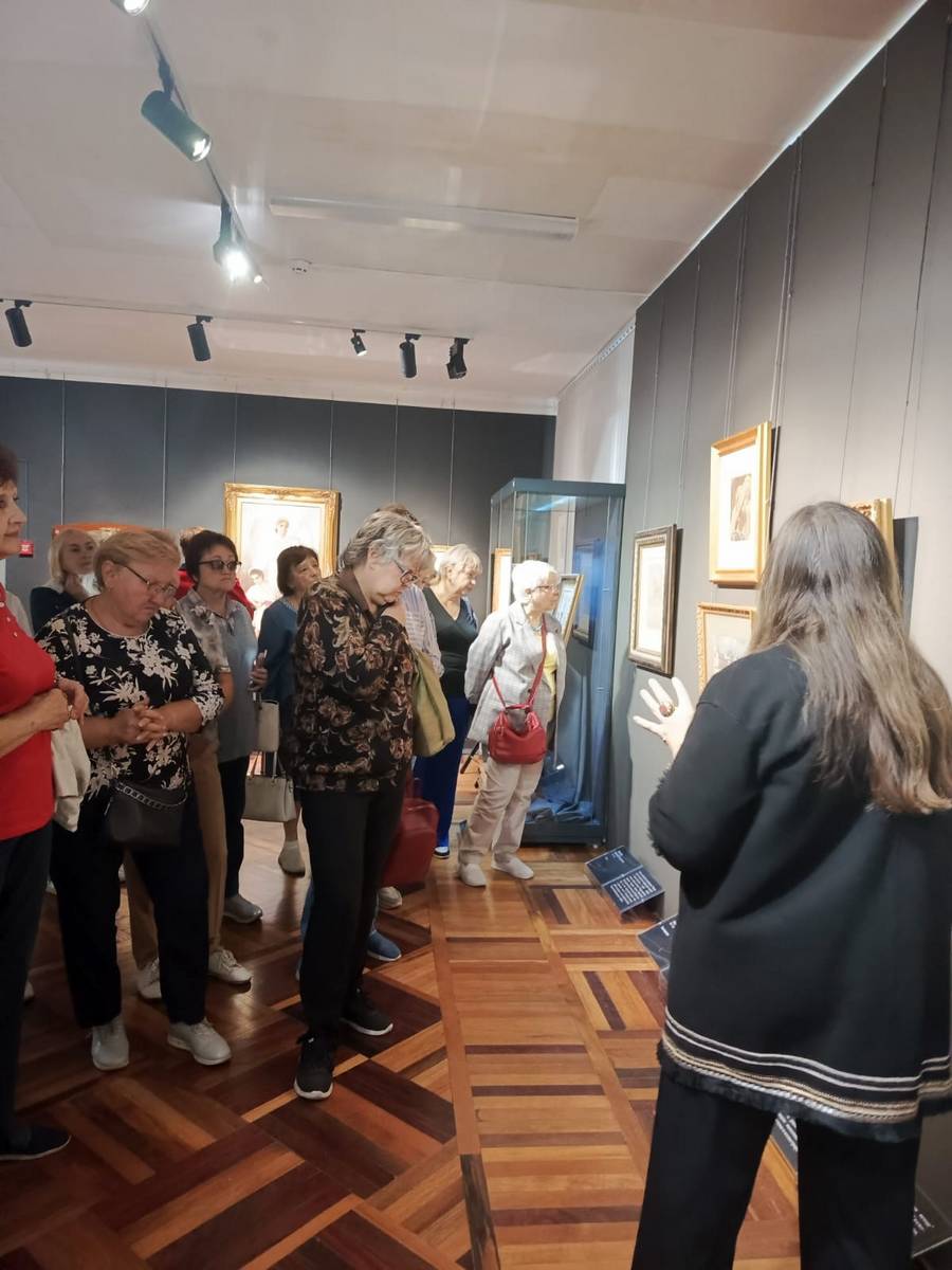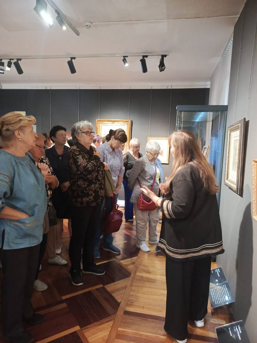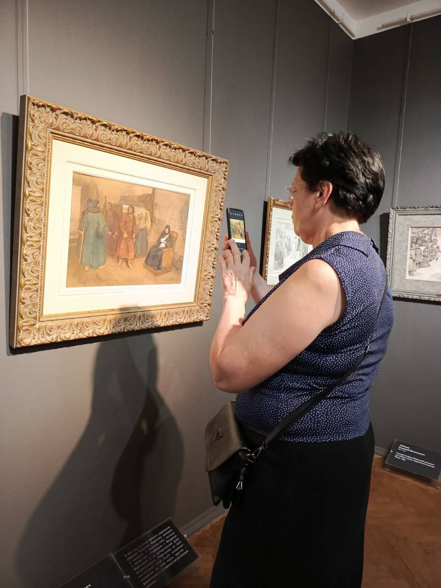 Эта выставка – редкое собрание работ мастеров XIX и XX веков из личной коллекции известного мецената Андрея Анатольевича Конькова. Участники проекта увидели подлинные работы великих художников: Ильи Репина, Виктора Васнецова, Ивана Билибина, Константина Маковского…, которые расписывали храмы Спаса Нерукотворного, Спаса –на - Крови, Киево-Печерскую лавру, Храм Христа Спасителя, Владимирский собор в Киеве. В экспозицию вошли эскизы, наброски, этюды и фрагменты картин – те самые «рабочие» материалы, которые обычно скрыты от зрителя в запасниках музеев. Именно в них часто наиболее искренне и непосредственно раскрывается творческий поиск художника, который раскрывала вместе с нами замечательный экскурсовод, влюбленный в свою профессию, Ирина Васильевна Разинькова. Каждый лист, каждый этюд – это акт сохранения национального культурного наследия.