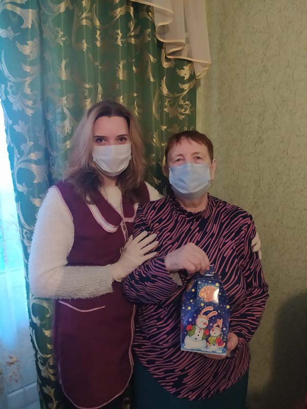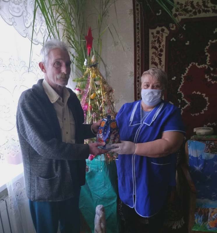 В связи с чем специалистами «СРЦ «Забота» города Курска» были организованы посещения граждан старше 65 лет, состоящих на обслуживании учреждения, с целью поздравить их с Новым годом и вручить им сладкие подарки.