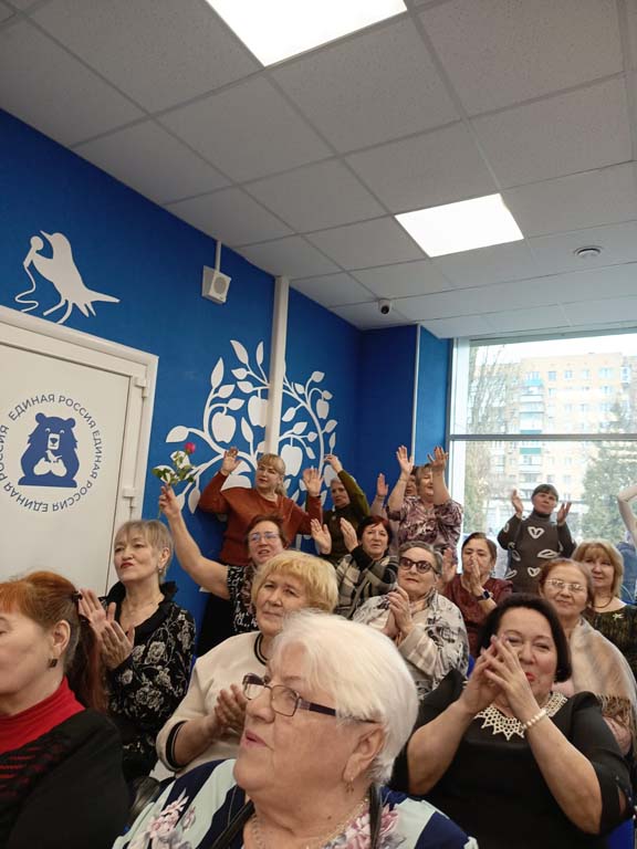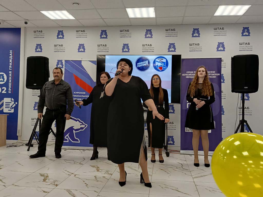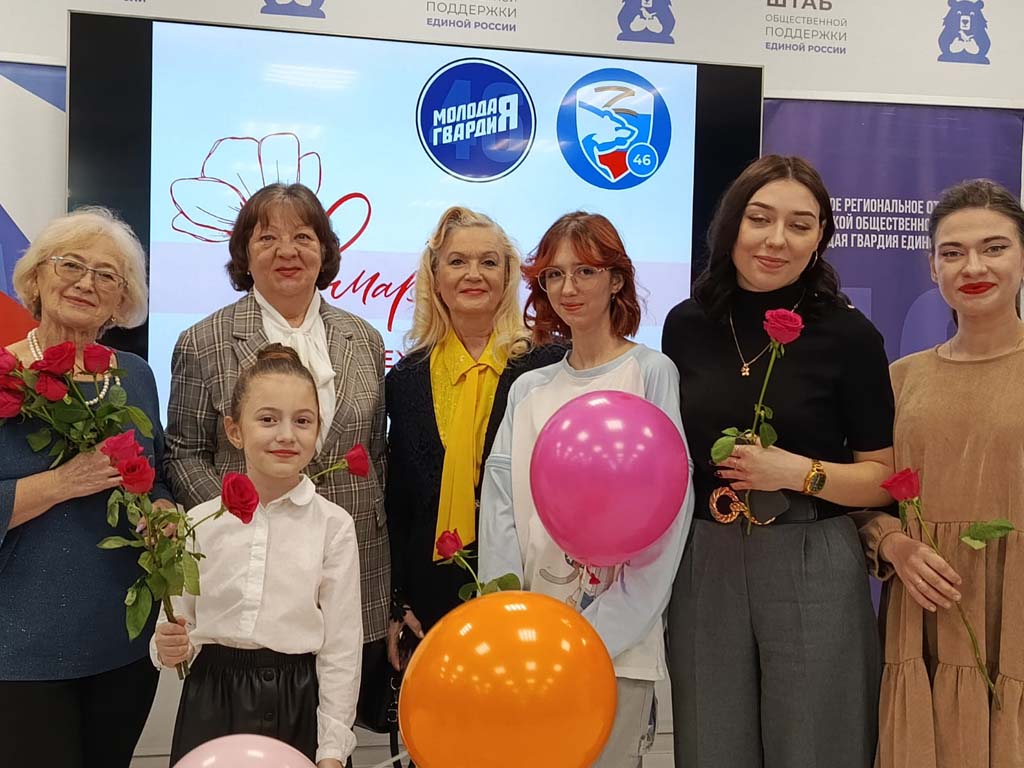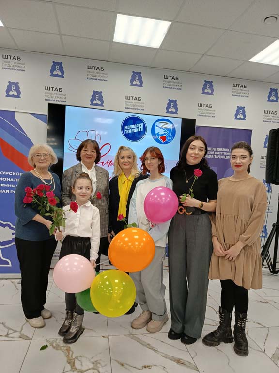 Жизнеутверждающий праздник весны, цветов, радости, отличного настроения подарили женщинам клуба «Стимул», объединившего участников социального проекта «Курское долголетие» на базе ОБУСО «СРЦ «Забота» г. Курска, в Штабе общественной поддержки накануне Международного женского дня. Теплыми словами, цветами, воздушными шарами и подарками всех поздравил с наступающим праздником Председатель Курской областной Думы Ю.М. Амерев вместе с представителями общественной организации «Молодая гвардия». Зрители рукоплескали, подпевали и танцевали вместе с вокальным ансамблем «Раздолье» из Кореневского района, юными вокалистками и их руководителем Екатериной Шойтовой из музыкальной студии Music Family города Курска.