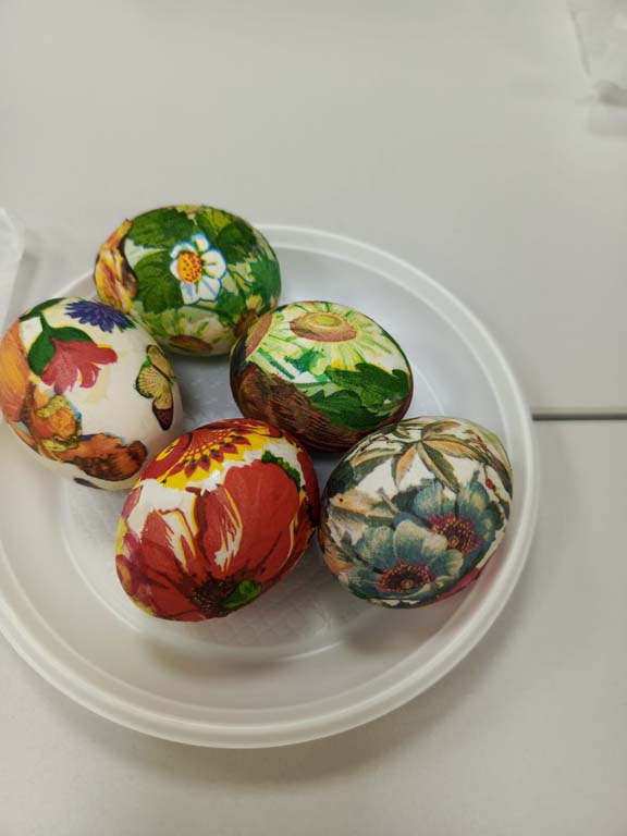 В завершении встречи член клуба «Стимул» Елена Николаевна Жирова провела мастер-класс по росписи яиц в технике декупаж. Участники внимательно слушали объяснения мастера, который щедро делился секретами техники декупажа. В завершении каждый с гордостью демонстрировал свою работу. Уникальные, неповторимые, наполненные теплом и душой – эти изделия стали настоящим украшением и памятным сувениром.