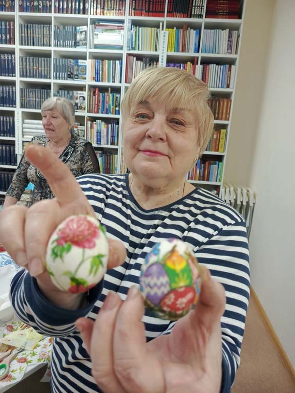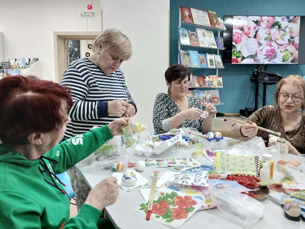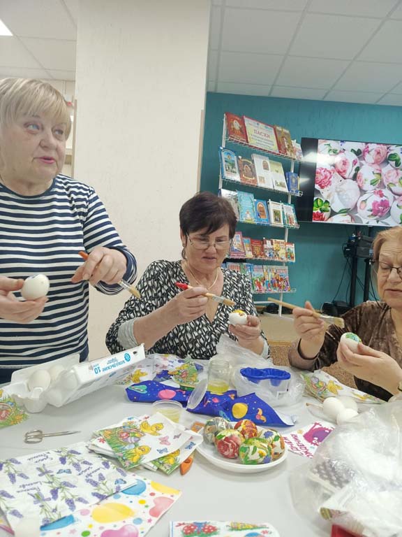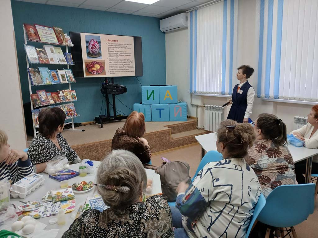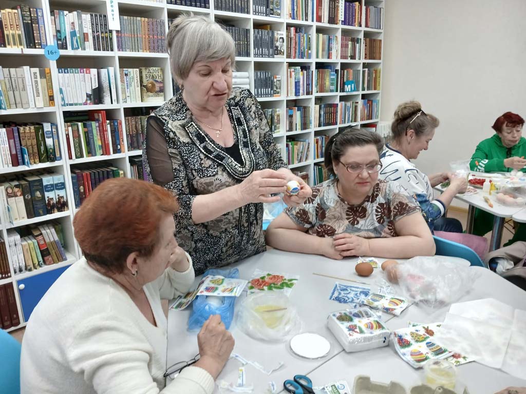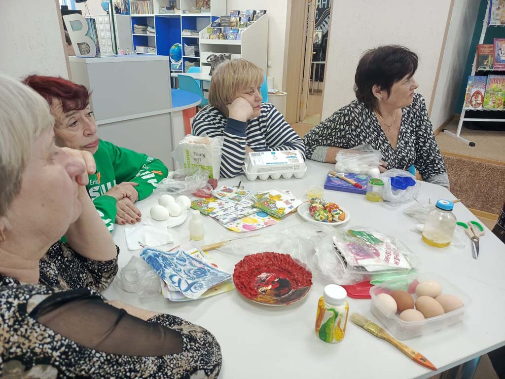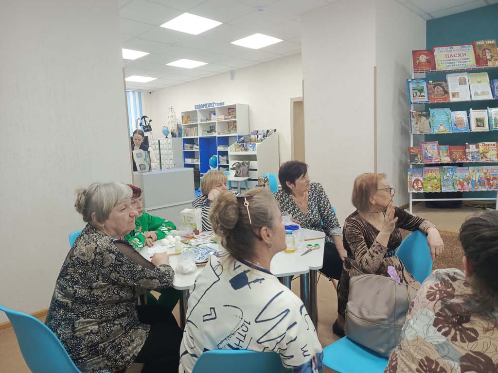 Рукодельницы клуба «Стимул», объединившего участников социального проекта «Курское долголетие» на базе ОБУСО «СРЦ «Забота» г. Курска, посетили творческую встречу «Пасха – праздник весны и радости» в в детской модельной библиотеке-филиале №1 им. Е.А. Благининой.