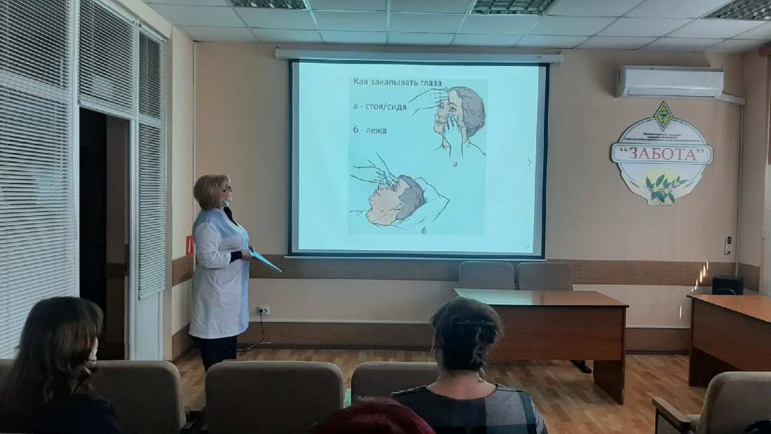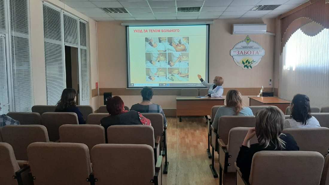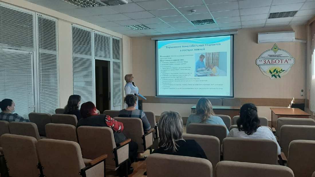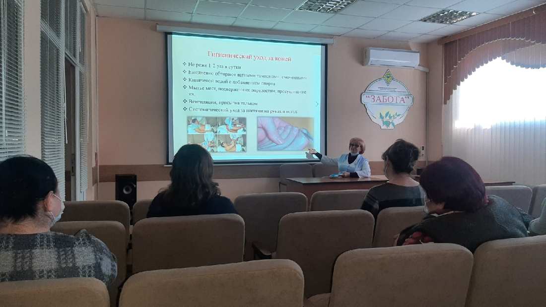 В актовом зале ОБУСО «СРЦ «Забота» города Курска» состоялась очередная лекция в ходе ежемесячной работы «Школы родственного ухода». На этот раз она была посвящена теме «Уход за людьми пожилого возраста и инвалидами. Кормление, уход за кожей, полостью рта, закапывание капель в глаза, уши, нос».