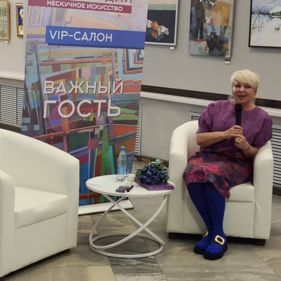 Теплую, почти домашнюю, творческую встречу с Юлией Бартеневой посетили участники клуба «Стимул» в выставочном зале имени Казимира Малевича на ее персональной выставке «Я и мои дети».