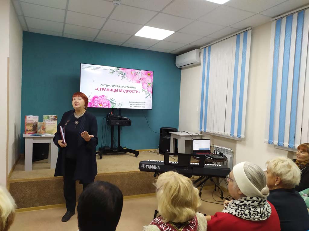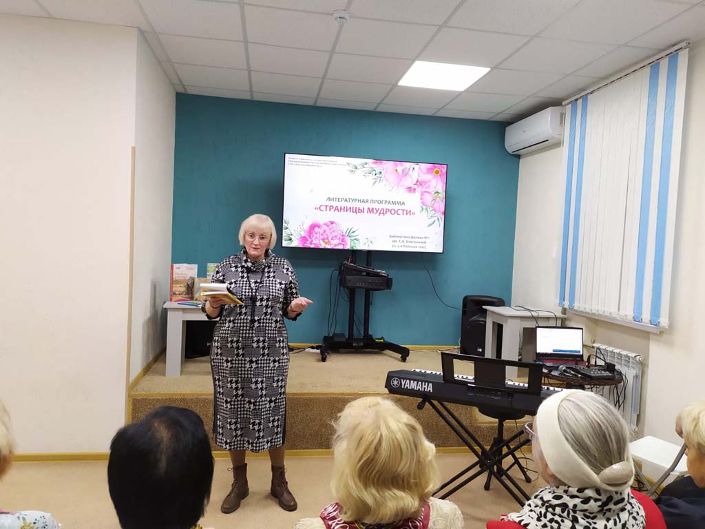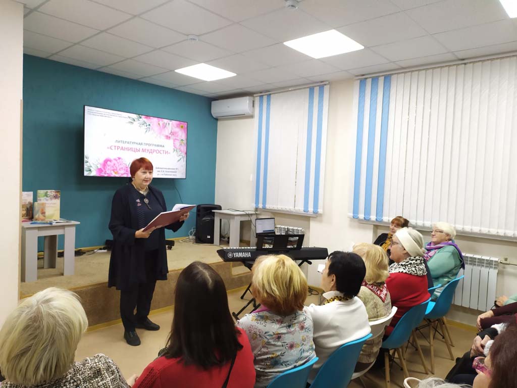 Участники социального проекта «Курское долголетие» клуба «Стимул» ОБУСО «СРЦ «Забота» г. Курска посетили литературную программу «Страницы мудрости» в детской модельной библиотеке-филиале №1 им. Е.А. Благининой.